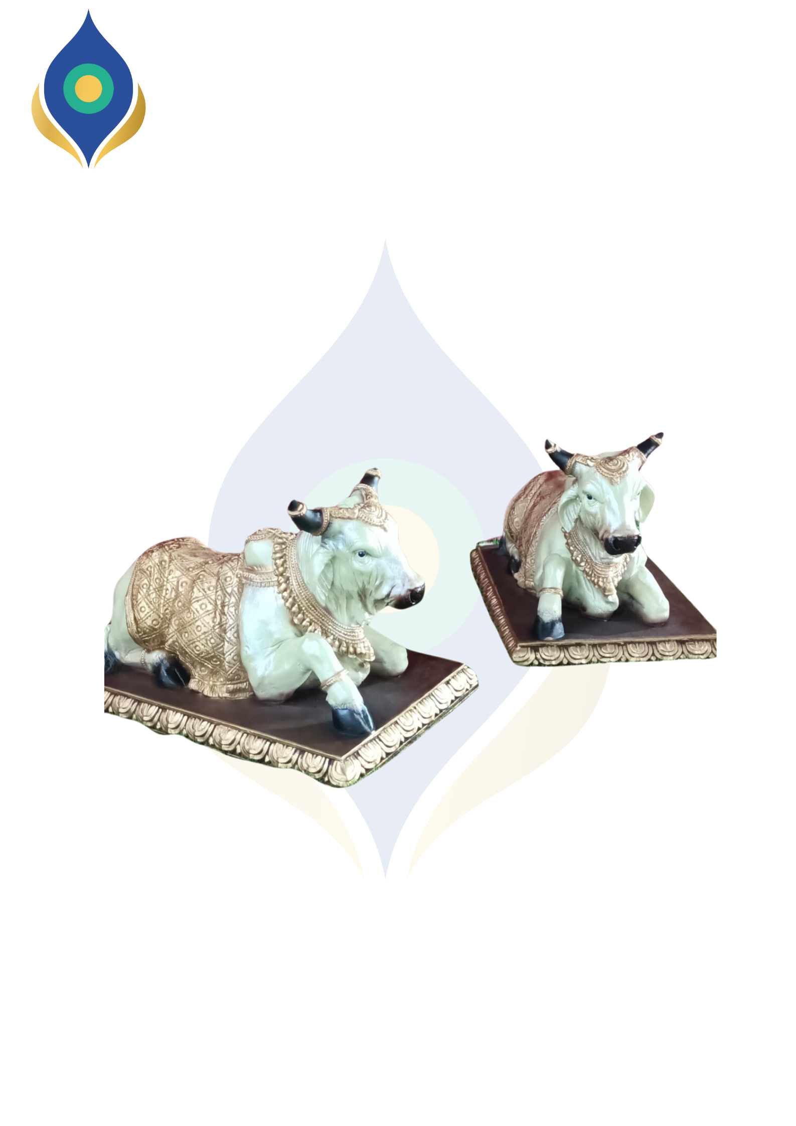 New design Nandi cow fiber idol in white and brown. Traditional mandap decor.